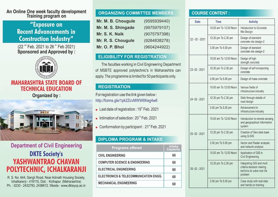 Online One Week Faculty Training Program On”Exposure On Recent Advancement In Construction Industry” Organised By Civil Department